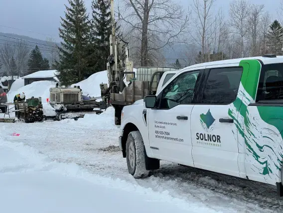 Décontamination d’une ancienne station-service par excavation, chargement, transport, traitement et élimination des sols contaminés dans un site autorisé : Un total de 300 t.m. de sols contaminés « D+ » en BTEX et 70 t.m. de sols contaminés « C-D » en Hydrocarbures pétroliers (HP C10 à C50) ont été traités dans un site autorisé. Un total de 380 t.m. de sols contaminés de « plage B-C » en BTEX et HP C10 à C50 ont été disposés ou traités dans des sites autorisés. Solnor a attesté que tous les sols contaminés dans les secteurs identifiés de l’étude antérieure et dans le plan de réhabilitation ont été excavés, chargés dans les camions de transport et envoyés dans des sites autorisés par le MELCCFP à les recevoir.